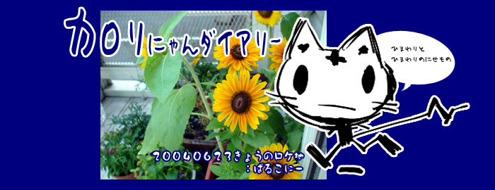 | 8月9日 な、なんだ昨日のゆるい日記は! だめだ最近のカロリには飢えが足りない。英語で言うとハングリーが足りない。たるんでいる(おなかも)。 という前フリをふまえつつ、昨日ちらっとみたあるある大辞典で体がスリムになる運動を覚えたカロリ。ようし今日から毎日階段は1段飛ばすよ、歩幅はなるべく大きくとるよ! 2週間頑張ればスリムな体が手に入るのよぅ! たのしみよぅ! |